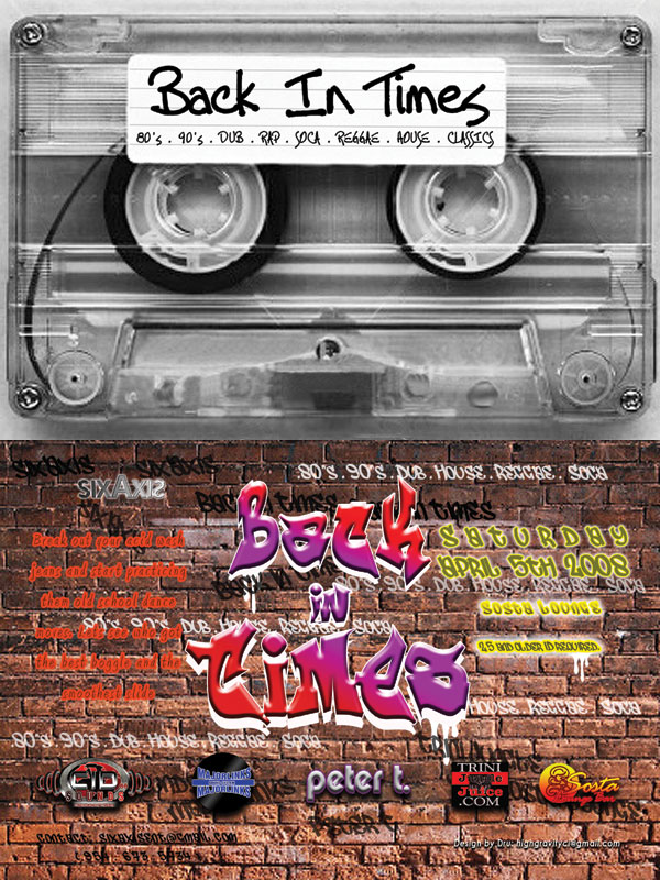 With everyone either home in Trinidad for C2k8 or home in their beds suffering from a serious 'Carnival Tabanca' because they were missing the jump up this year, the February Episode of FRIENDS had a smaller turnout than usual. But with everyone reaching back in town, the vibe had been building for March's episode. One month was enough time for those of us to get over our tabanca. And for those that made it to Carnival, another soca fete would surely help to keep the fading memories fresh in their minds. They really should have called this episode "The International Affair", because folks were in town from all parts - North and South. We had the sisters down from Atlanta, and Nicada across the pond from London and her crew in from Trinidad as well. Yes we know Atlanta is not an international destination, but you get the point! So you know with the vibes buzzing, we had to make sure and get there early, and no it's not for the FREE entry before midnight, cause TJJ always on the list at FRIENDS. Shortly after 12AM, folks had already gathered inside and a line was forming outside. Seems the 25 and over crowd like to start their partying early, or maybe the ladies like the 2 for 1 drinks, who knows? So we elbow up to the bar and by now the bartenders know how we does do it - so it's just a look and a nod and then voila! Goose and Cran, no Red Bull for lent!! ;-) With Major Links on the set in the early session, they were warming the folks up and setting the nite off to a good start. Special guest DJ Niko Star was next up and changed up the vibes nice nice, with a mix of Dancehall and Hip-Hop ... a lil something for everybody. So by the time C.I.Dee Sound take a turn on the tables partygoers were more than ready for the Soca, and they so obliged. And so it went with the 3 DJs taking turns keeping everybody waist moving. As we have come to expect, later on in the night (after 3am) we started to notice folks with styrofoam cups in their hands, so we know that could only mean one thing..... CORN Soup, YES!!! This was also missed last month. We made our way to the back bar to see a line for soup, oui! And the DJ ent even announce it have soup yet!!! This time there was some cheese paste sandwiches, which go down real good after 3 nods to the bartenders. Hehe. As usual, a good time was had by all and the vibes started one time for next month cause they say next month is BACK IN TIMES!!! And we remember the last Back in Times party, so this time we getting a jehri curl high top fade, and we go be looking real sick dread! - Spudz McKenzie ==================================== | ||||||||||||||||||||||||||||||||||||||||||||||