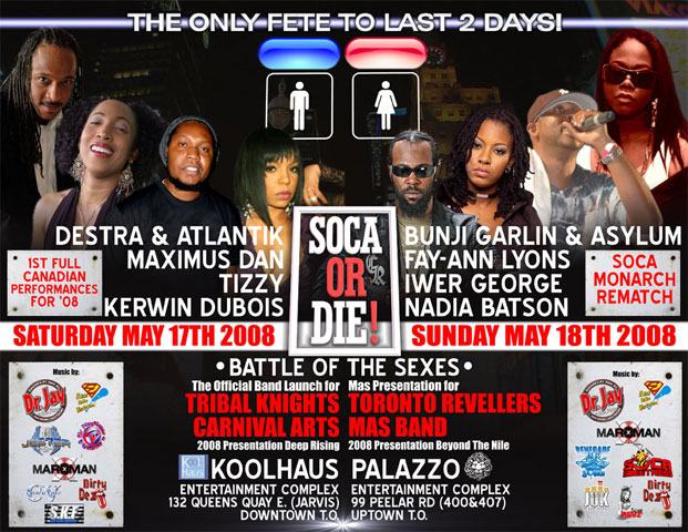 Now we couldn't possibly be at GYAL FARM without having the 3rd Place International Soca Groovy Monarch '08 winner's present .... KERWIN DU BOIS and SHAL MARSHALL came on stage in their "cowboy" attire tellin' the crowd, "Let's get ready to round up dem gyal right now!! Line up! Line dem up!!!" As the ladies screamed and called out for more, they continued to mash up the stage with their lyrics from popular 2k8 soca hit "Gyal Farm"!! Patrice Roberts and Zan were supposed to also perform alongside Kerwin and Shal, but unfortunately due to flight delays, they were not able to make it into Toronto. However, they were considerate enough to call into Toronto's #1 urban radio station, FLOW 93.5 during Dr. Jay's Soca Therapy show that runs every Sunday from 6-9pm. You could hear the disappointment in their voices for missing their flight, as they both stated how much they wanted to perform for the people in Toronto. The situation was beyond their control, but the TJJ crew has faith that they will definitely make up for it, so there is no need to worry!! In Jay We Trust!! smile